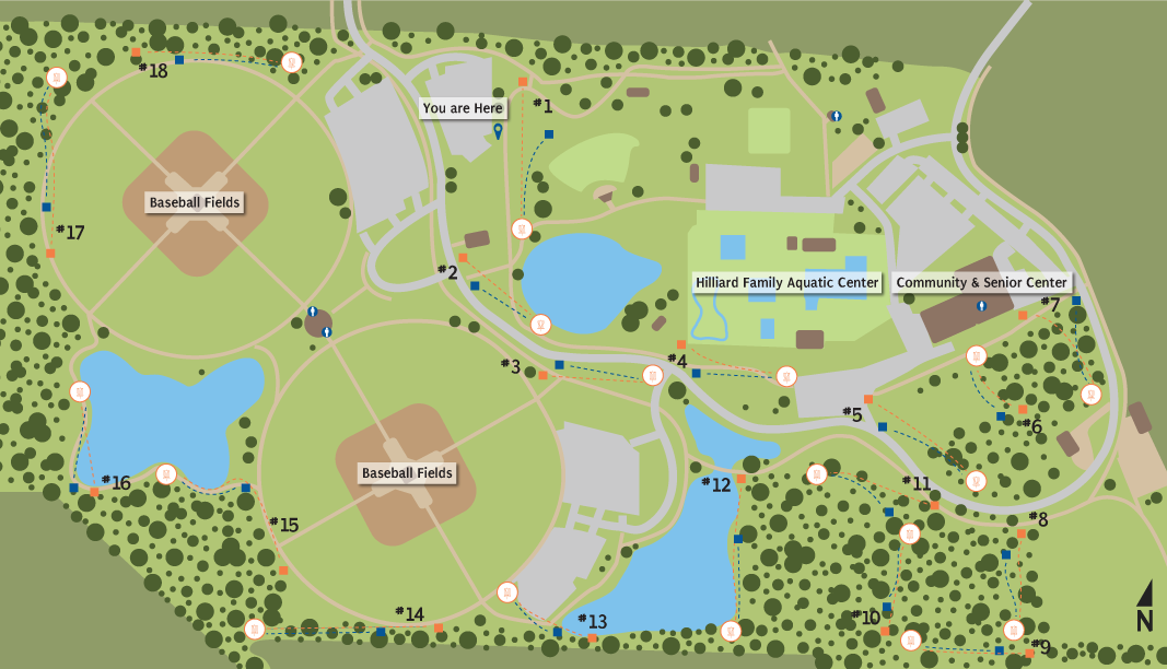The City of Hilliard is home to an 18-hole disc golf course at Roger A. Reynolds Municipal Park. The permanent course, renovated in 2020, is the newest amenity to the popular park with a combination of open, wooden, scrubby, and water holes. This technical course includes challenges with tight fairways, water hazards, and low ceilings, a true park course to the enjoy the scenery! Long tees play at reasonable 6,203 feet, while the short tees encourage plenty of aces with a distance of 4,431 feet. Roger A. Reynolds Municipal Park Disc Golf Course also includes signage located on each pad, along with a kiosk near the first tee pad. Hilliard resident and affiliation with Columbus Flyers Disc Golf Club, Dean Barbo and City of Hilliard Recreation and Parks staff designed the course. Ephemeral wildflowers can be found in certain areas of the disc golf course. Read more about these delicate spring wildflowers here.