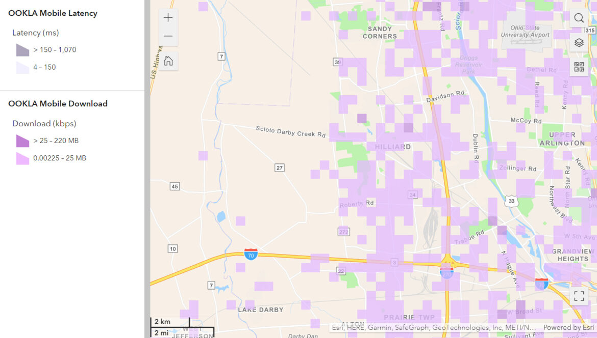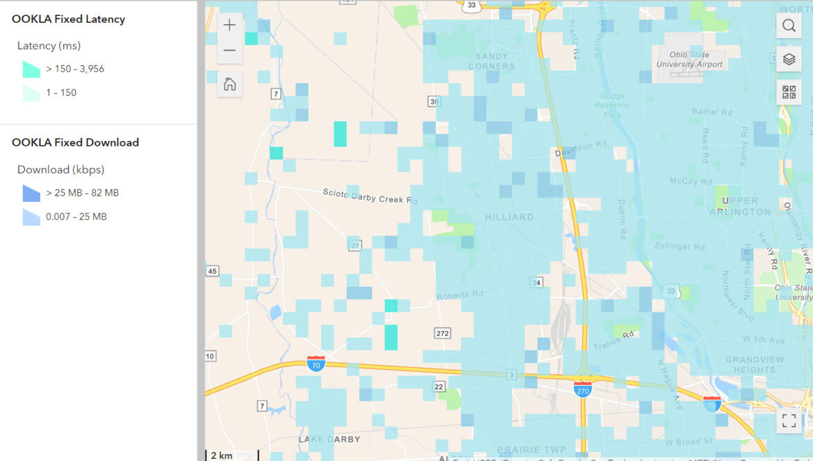 The City of Hilliard maintains a high-speed Internet map for any citizen in Ohio to use by accessing Ookla’s public accessible speed test bulk data and mapping to the City’s geographic mapping system. This map not only provides data for planning its network deployments but is offered to all communities in Ohio.